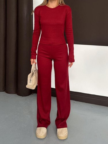Kadın yeni sezon uzun kollu ribana detay ikili takım