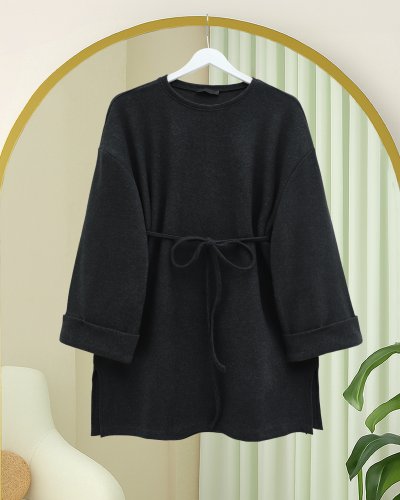 Kolu Katlı Beli Bağlamalı Yırtmaçlı Kaşkorse TunikAntrasit