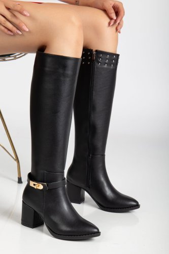 Jeoli Siyah Cilt Topuklu Çizme
