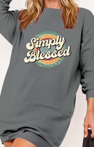 Kadın uzun kollu bisiklet yaka yazılı viskon iki iplik elbise