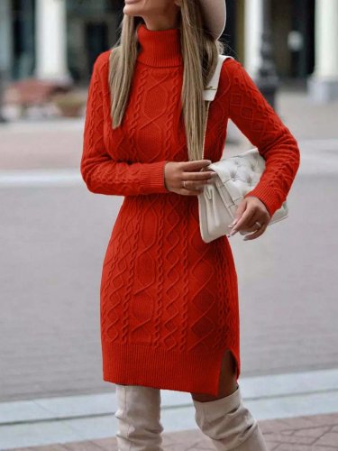 • Kadın uzun kollu loren yünlü motifli midi boy triko elbise