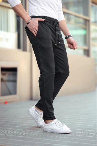 • Erkek Diagonel Mikro dokulu Cepli Beli Lastilki Pantolon Siyah
