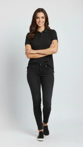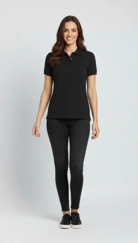 Pike Kumaş Düğmeli Yaka Regular Rahat Günlük Kısa kol Tişört Tshirt Siyah