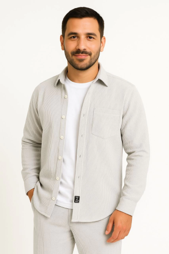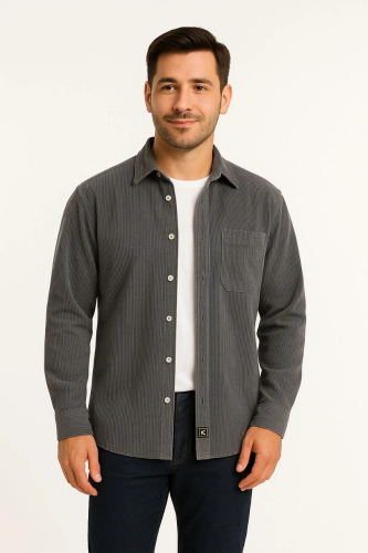 Erkek Fitilli Kadife Cepli Gömlek Oversize Rahat Kalıp Gri