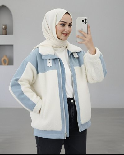 Kot Detaylı Astarlı Cepli Peluş Mont Beyaz