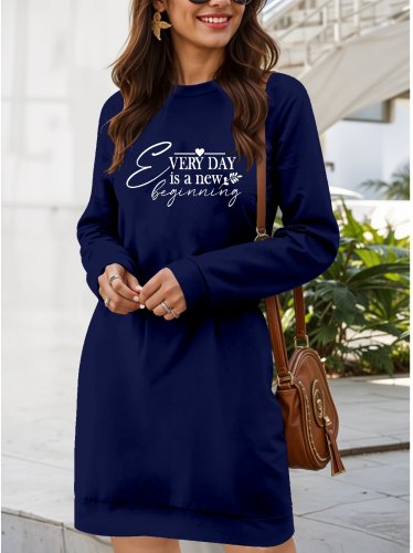 Kadın uzun kollu bisiklet yaka yazılı viskon iki iplik elbise