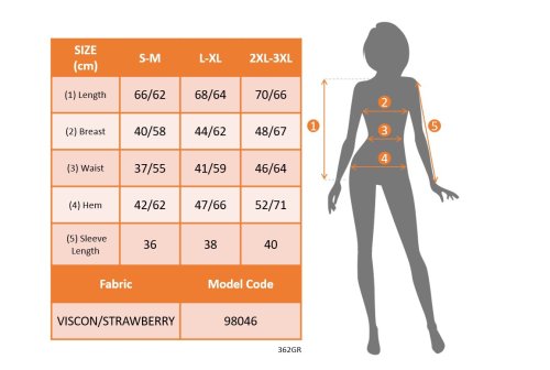 • Modelin Ölçüleri: Boy:165, Kilo:55, Göğüs:90, Bel:72, Kalça: 100