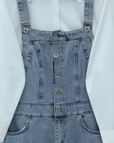 • Yarım Düğmeli Cepli Kot Salopet Buz Mavi